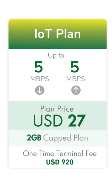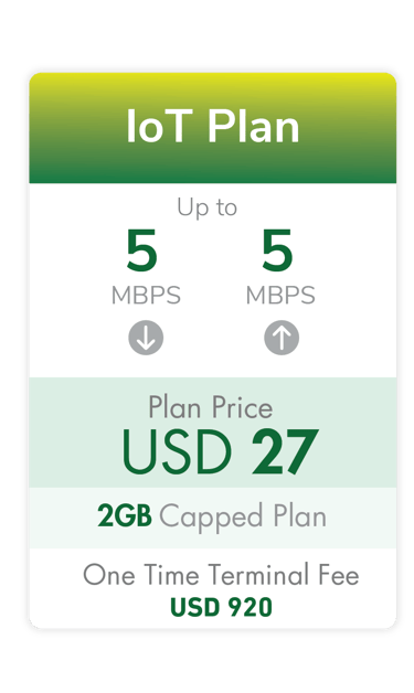 Connect your IoT devices such as sensors for soil sanity, nutrient levels and humidity – with low-cost, fuss-free satellite broadband connectivity on your remote sites.